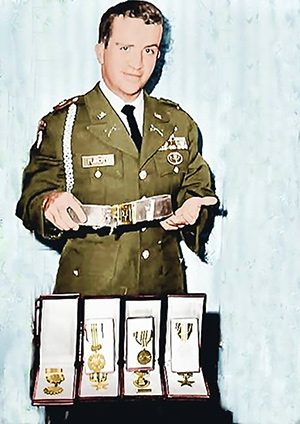 He attended infantry Officer Candidate School and was commissioned a 2Lt on August 31, 1967. He was assigned to the 101st Airborne Division and went to Vietnam serving as a Platoon Leader and Recon Platoon Leader with companies B, C and D, & E. He and his platoon were engaged in some of the heaviest fighting on the outskirts of Hue during the Tet Offensive. He earned the Silver Star, 2 Bronze Stars (w/V, 3OLC), and 2 Purple Hearts.
